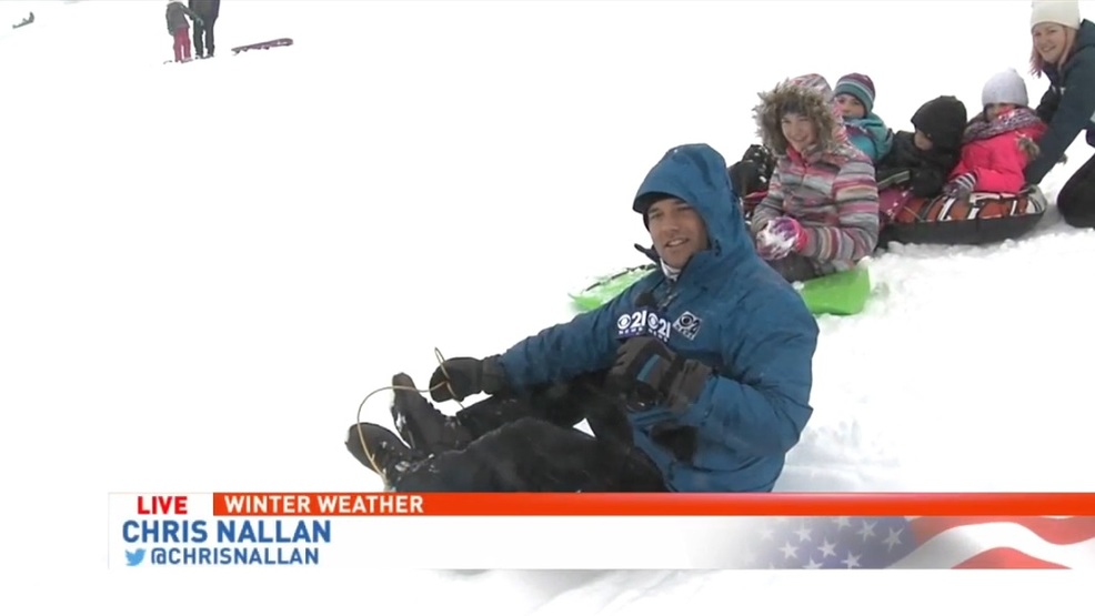 Meteorologist Chris Nallan has some fun in the snow